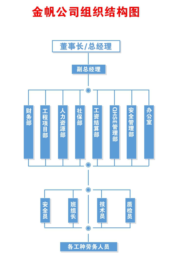 公司下設(shè)總經(jīng)理辦公室、工程項(xiàng)目部、生產(chǎn)經(jīng)營(yíng)部、安全監(jiān)督部、QHSE管理部、技術(shù)部、設(shè)備部、材料部、財(cái)務(wù)部、人力資源部、社保部、客戶服務(wù)部等管理。公司以現(xiàn)代化的科學(xué)管理手段推行先進(jìn)施工技術(shù),建立完善的質(zhì)量、安全環(huán)保體系,以服務(wù)態(tài)度、服務(wù)形象贏得了良好的經(jīng)濟(jì)效益和社會(huì)信譽(yù)。兩年來(lái)先后與世界五百?gòu)?qiáng)企業(yè)----瀘州市臨江油氣田服務(wù)公司(中石油下屬企業(yè))、中石化西南石油局物探大隊(duì)241隊(duì)(中石化下屬企業(yè))、中石化西南石油局物探大隊(duì)249隊(duì)(中石化下屬企業(yè))、中石化石油工程地球物理有限公司西南分公司(中石化下屬企業(yè))、中石化西南石油局貴州服務(wù)中心(中石化下屬企業(yè))、中石化西南石油局赤水天然氣銷(xiāo)售公司(中石化下屬企業(yè))、中國(guó)移動(dòng)通信集團(tuán)四川有限公司瀘州分公司;瀘州市第七建筑工程公司、瀘州太昌建筑安裝工程有限公司、四川省佳訊通信工程有限公司、四川瀘州市世紀(jì)建筑工程有限公司等單位建立勞務(wù)分包合作關(guān)系。